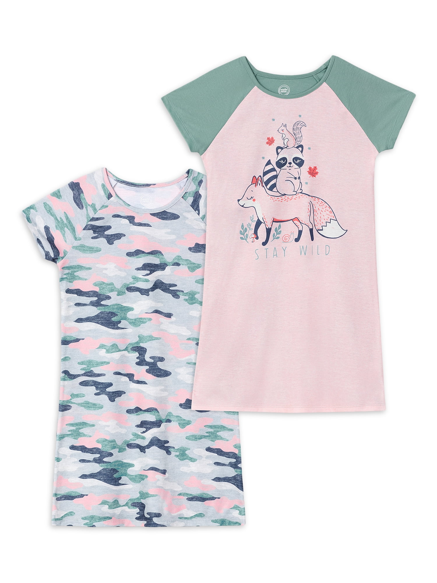 Wonder Nation Girls Short Sleeve Pajama Nightgown 2 Pack Size 4 18 And Plus Walmart Com